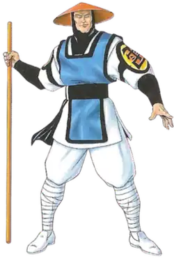 Raiden (Japanese: 雷電, /ˈrdɛn/ RAY-den) is a fictional character in the Mortal Kombat fighting game franchise by Midway Games and NetherRealm Studios. Based on the Japanese deity Raijin, he is depicted as the god of thunder who possesses control over lightning. He debuted in the original 1992 game and has appeared as a playable character in every main installment except Mortal Kombat 3 (1995) and its first update. In the storyline of the games, Raiden is the protector of Earthrealm. He fulfills his duty by selecting and training the warriors who defend Earthrealm from various threats, while also participating directly in the realm's defense. Raiden generally serves as a mentor figure to the franchise's heroes, although he sometimes assumes a darker role in the story, which sees him become more ruthless in his protection of the realm. In Mortal Kombat 1, the new main playable Raiden is depicted as a human who was raised at a farmland and becomes Earthrealm's current Mortal Kombat champion in Liu Kang's timeline, while his previous godly counterpart also exist as a Titan of his own timeline.