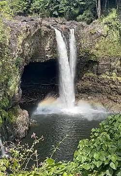 Rainbow Falls, or Waiānuenue, is a waterfall located in Hilo, Hawaii. It is 80 ft (24 m) tall and almost 100 ft (30 m) in diameter. The falls are part of the Hawai'i State Parks. There is no fee to see the falls.