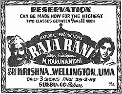 10. ^ "Raja Rani". The Indian Express. 23 February 1956. p. 3. Retrieved 5 May 2022 – via Google News Archive.