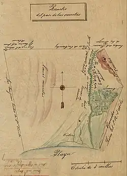 The grant stretched from inland (near the present day San Diego Freeway) to Santa Monica Bay, from present day Mar Vista, Westside Village, Palms, and Culver City; northwest to Pico Boulevard and the Ocean Park district of Santa Monica; and south along Ballona Creek through Venice, the Ballona Wetlands, and present day Marina del Rey, Playa Vista, and Playa Del Rey.[1][2][3] Neighboring ranches included Rancho San Vicente y Santa Monica, Rancho Rincón de los Bueyes, Rancho Aguaje de la Centinela, and Rancho Sausal Redondo.