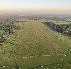 The airfield has two 60 m (200 ft) wide parallel grass-covered runways: 15L/33R 1,100 m (3,600 ft) and 15R/33L 1,600 m (5,200 ft).[2]
