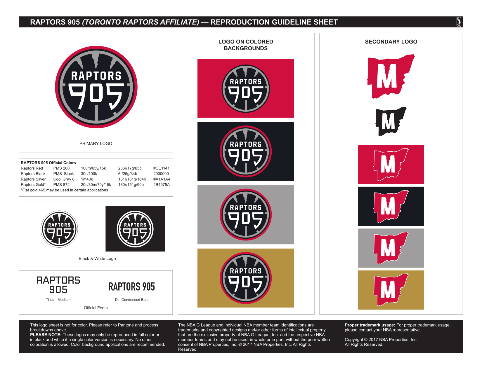 - ^ "Raptors 905 Reproduction Guideline Sheet". NBA Properties, Inc. Retrieved August 30, 2017.