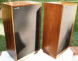 Some of these early 3-way models featured 10" and 12" woofers manufactured by Jensen ("Flex-Air") and CTS (Chicago Telephone Supply), 5" whizzer cone squawkers manufactured by Philips Electronics of the Netherlands, and 2" and 2.5" cone tweeters by Peerless of Denmark.[22] The Rectilinear speakers were typically, but not always, of ported design and finished in walnut with fabric or fretwork grilles. Many models featured one, or sometimes two, rear tone controls. The company offered some of their models as kits and "semi-kits".[23]