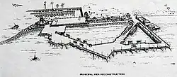 - 1895–1920, Y-shaped wooden pier called "Wharf No. 2" with railroad tracks on one prong, the other for fishermen and tourists; built south of Wharf #1 near Ainsworth Court in front of the Hotel Redondo; severely damaged by a storm in 1919, subsequently open only to fishermen, but demolished for safety reasons
