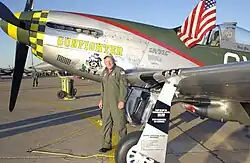 Regis Urschler in retirement with P-51 "Gunfighter"