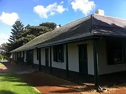 Initially the building was a single room, used as a store. Over the next few years another three rooms were added, with all four rooms having a common hipped roof. Further extensions and renovations occurred when it became the governor's residence in 1873, with an additional seven rooms being added creating the L-shaped building.[3]