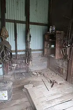 A windmill was erected near Carnarvon Creek, where there was a good quantity of water, about 200 yards (180 m) from the sergeant's quarters. Water was pumped into a 2,000-imperial-gallon (9,100 L; 2,400 US gal) galvanised iron tank erected behind these quarters, on a stand 9 feet (2.7 m) high. Pipes from this tank lead to the sergeant's quarters and both stallion stalls.[40] A meat house, for meat processing, was also erected, as an essential component of the station.[1]