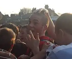 Brodie surrounded by fans after York City's win over AFC Telford United in the FA Trophy semi-final in 2009