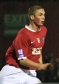 Brodie made his first appearance of 2007–08 after being introduced as a 61st-minute substitute at home to Cambridge United on 11 August 2007, but was unable to help the team as they lost 2–1.[30] His first goal of the season came with the opener in a 3–2 home defeat to Rushden & Diamonds on 30 August 2007, and this was followed up with a goal in the following match, a 2–2 home draw with Altrincham.[31][32] Having not scored since, he received abuse from some sections of the York support during the 6–0 home victory over Rushall Olympic in the FA Cup fourth qualifying round on 27 October 2007.[33] Following this, manager Billy McEwan said "I was disappointed to hear the young players like Richard Brodie getting stick. How can we develop young players if we don't support them?"[34] Brodie and Onome Sodje scored in extra time to give York victory in the Conference League Cup fourth round match away to Stafford Rangers on 22 December 2007, which set a new club record of six successive away victories.[35] Brodie went on to score two goals in stoppage time to give York a 4–3 away win over Droylsden,[36] which drew praise from manager Colin Walker.[37]