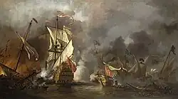 An English Ship in Action with Barbary Vessels, 1678