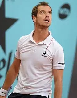 Richard Gabriel Cyr Gasquet (French: [ʁiʃaʁ ɡaskɛ];[3] born 18 June 1986) is a French former professional tennis player. He was ranked as high as world No. 7 in men's singles by the ATP, attained in July 2007.[4] Gasquet won 16 singles titles on the ATP Tour, and earned over 600 career match wins.[5][6] His best performances in major singles tournaments were three semifinal appearances, two at the Wimbledon Championships (in 2007 and 2015) and one at the US Open (in 2013). His best performance in ATP Masters 1000 tournaments tournaments was runner-up finishes in Hamburg in 2005 and Toronto in 2006 and 2012. Gasquet won the mixed doubles title at the 2004 French Open, partnering Tatiana Golovin, and an Olympic bronze medal in men's doubles at the 2012 London Olympics, partnering Julien Benneteau. Gasquet was best known for his elegant groundstrokes and his one-handed backhand.