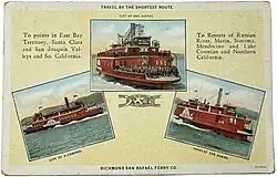A 1920s postcard of the Charles Van Damme, City of Richmond, and City of San Rafael