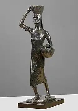 Barthé's debut as a professional sculptor was at The Negro in Art Week exhibition in Chicago in 1927.[9] His first solo exhibition was held at the Women's City Club in Chicago in 1930, exhibiting a selection of 38 works of sculpture, painting, and works on paper.[20] In 1932, the Whitney Museum of American Art decided to purchase a bronze copy of the Blackberry Woman (1930) after exhibiting it at the opening exhibition of Contemporary American Artists in 1932.[10] Barthé's work was paired with drawings by Delacroix, Matisse, Laurencin, Daumier, and Forain at the Caz-Delbo Gallery in 1933 in New York City.[21] In 1942, he had an exhibition of 20 works of art at the South Side Community Art Center in Chicago.[22] The retrospective which included works from private collections shown for the first time, Richmond Barthé: The Seeker was the inaugural exhibition of the African American Galleries at the Ohr-O'Keefe Museum of Art in Biloxi, Mississippi, curated by Margaret Rose Vendryes, PhD.