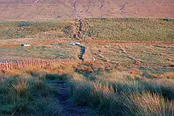 The source of the river at the base of Will Narr, Hordern Stoops, Lancashire. At the top of the picture are the slopes of Winter Hill