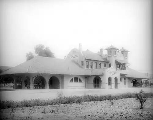 The station was constructed in 1904 by the San Pedro, Los Angeles and Salt Lake Railroad along their route to Los Angeles. Union Pacific Railroad acquired the line on Vine Street along with the station in 1921. Local Pacific Electric streetcars served the station via a terminal at 7th and Vine until 1924.[2] Passenger service ceased in 1971 when Amtrak took over intercity passenger service in the United States.[3] The final trips of the City of Los Angeles serving the station were on April 30 eastbound and May 2 westbound.[4][5]