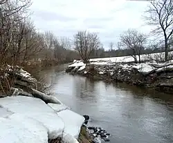 There are twelve species of fishes in the river. The main species are horned mullet (Semotilus atromaculatus), black sucker (Catostomus commersoni), belly-rotten (Pimephales notatus) and the Redfin Shiner (Luxilus cornutus).[6]