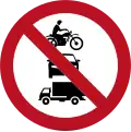 Prohibitory signs in Indonesia are circular in shape and have a red border with diagonal bars except for Stop, Give Way, and Railroad Crossing signs.