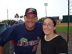 Delaney with a fan while playing for the Fort Myers Miracle in 2008