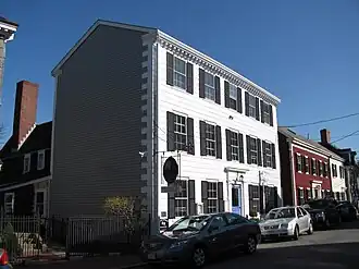 The Robert King Hooper Mansion, built in 1728, is a historic house in Marblehead, Massachusetts. The oldest section of the mansion was built by candlemaker Greenfield Hooper, and his son, Robert "King" Hooper, expanded the house, adding its three-story Georgian façade c. 1745.[2] Hooper made his fortune through the transatlantic fishing business.[3]