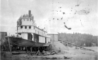 In 1913, the Robert C Hammond made several trips on the Nechako as well as working on the route from Soda Creek to Fort George. For one auspicious moment in her short career, she was going to be a Royal Mail Ship for the newly formed Imperial Express Company which had been formed by Mayor JT Robinson of Kamloops and JC Shields of Vancouver, which had won the government mail contract from the BC Express Company. However, Imperial Express found themselves ill-prepared to meet this challenge and the BC Express Company consented to carry the mail for them for $500 a week.[3] The Robert C Hammond continued its service until September 1914 when the depressed economic conditions caused by the Great War and the halt on the construction of the Pacific Great Eastern Railway caused her owners to retire her.