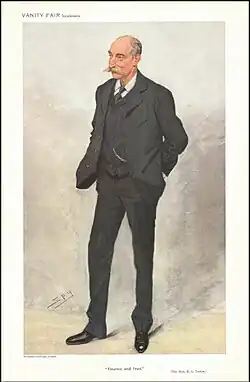 He was born in Scarva, Ireland, the son of John Garnett Tatlow and Anne Matthews, and was educated in Cheltenham. After completing his schooling, Tatlow came to Montreal where he was hired by the Montreal Ocean Steamship Company and later a brokerage office. He joined the militia and came to Victoria in 1879 to inspect the coastal defences there. Tatlow remained there as instructor to the local militia and custodian for artillery supplies. The following year, he was hired as private secretary to the lieutenant governor,[1] Albert Norton Richards. He continued in the same function for Richards' successor, Clement Francis Cornwall.[2] Tatlow resigned that post in 1886 and moved to Vancouver where he was a real estate, insurance and mining broker. He was a member of the city's park committee from 1888 to 1905 and served as chairman from 1895 to 1903. In 1893, he married Elizabeth Mary Cambie. Tatlow ran unsuccessfully for a seat in the provincial assembly in 1890 and 1894 before being elected in 1900. He introduced a private member's bill requiring all immigrants to be able to write in a European language. Tatlow served in the provincial cabinet as Minister of Finance and Agriculture (June 1903 to October 1909), Commissioner of Lands and Works (December 1906 to March 1907), and President of the Council (June 1903). He did not seek re-election in the October 1909 provincial election and resigned from the cabinet the day after the election was called when Richard McBride proposed guarantees to help finance the construction of the Canadian Northern Railway. Tatlow died in Victoria at the age of 54 after being ejected from his carriage.[1]