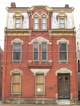 Robert W. Hazlett House is a historic home located at Wheeling, Ohio County, West Virginia. It was built in 1887, and is a three-story Second Empire style brick residence measuring 30 feet (9.1 m) wide and 112 feet (34 m) deep. It features a central hooded bay and a polychrome slate-covered mansard roof. The interior has many Queen Anne style details. In 1991, it housed Friends of Wheeling, Inc., a private, non-profit, historic preservation organization and four apartments.[2]