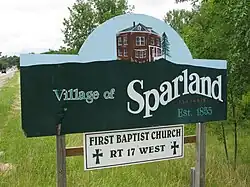 Sparland signboard featuring the octagon house