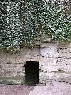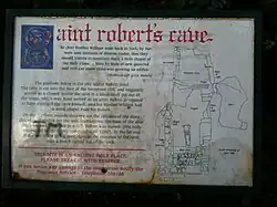 Robert lived in various places in the vicinity of Knaresborough before taking up residence in a cave by the River Nidd (then known as St Giles' Priory). It is said that King John visited him and Trinitarian friars also venerated him.[8] His brother Walter, then Mayor of York, came and paid for some new buildings, including a chapel dedicated to the Holy Cross. The floorplan of this can still be seen alongside Robert's cave in Knaresborough.[5]