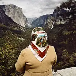 Minick's best known photo project, the "Sightseer" series, in which he photographed tourists visiting the National Parks and Monuments in the United States, began in 1979. While the first few images for this project were in black and white, the project soon became Minick's first experience working in color.[9] The "Sightseer" images were first exhibited at the Grapestake Gallery in San Francisco in 1981 and were reviewed by Thomas Albright in the San Francisco Chronicle.[10] Images from this series were also included in the hardcover book and major traveling exhibition American Photographers and the National Parks,[11] sponsored by the National Parks Foundation. In 1986, photographs from this series were included in the San Francisco Museum of Modern Art traveling exhibition and hardcover book Photography in California: 1945-1980.[12] Minick's best known image from the "Sightseer" series, "Woman at Inspiration Point, 1980", was also included in the Oakland Museum of California 1989 exhibition Picturing California, which traveled nationally, and this same image was also featured on the cover of the catalogue for the exhibition. In the year 2000, the Los Angeles County Museum of Art also featured the same image on billboards and as banners on light posts around Los Angeles advertising their exhibition Made in California.[13]