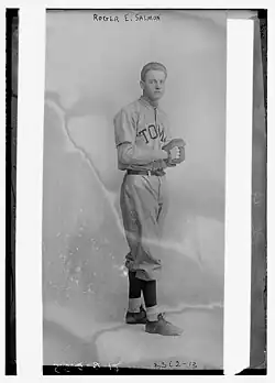 Roger Elliott Salmon (May 11, 1891 – June 17, 1974), was an American professional baseball pitcher who played in 1912 with the Philadelphia Athletics of Major League Baseball. He batted and threw left-handed. Salmon had a 1–0 record, with a 9.00 ERA, in two games, in his one-year career.
