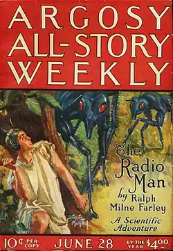 Under the pseudonym Ralph Milne Farley, Hoar wrote a considerable amount of pulp-magazine science fiction during the period between the world wars, appearing in such publications as Argosy All-Story Weekly and Amazing Stories, as well as occasional essays for The American Mercury, Scientific American, and science fiction fanzines. His works include The Radio Man and its numerous sequels, chiefly interplanetary and inner-world adventure yarns in the tradition of Edgar Rice Burroughs, with whom he was friends; Hoar also wrote a number of archetypal time-travel-paradox tales, collected in book form as The Omnibus of Time,[11] and "The House of Ecstasy", which has been frequently reprinted since its initial appearance in Weird Tales (April 1938).[12]