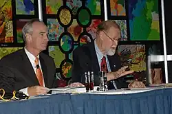 Roger Tomlinson (right), speaking at the 2008 ESRI International User Conference