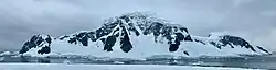 Rongé Island is off the Danco Coast on the west side of the Antarctic Peninsula. It is on the southeast side of the Gerlache Strait, opposite the Osterrieth Range of Anvers Island. The Arctowski Peninsula is to its east, and Laussedat Heights to its south. Lemaire Island and the mouth of Andvord Bay are to the southwest.[2] Rongé Island is separated from the mainland by the Errera Channel. Features of the island include Ketley Point, Mount Britannia, Mount Tennant and Georges Point. Nearby features include, clockwise from the north, Orne Islands, Cuverville Island, Brewster Island, Danco Island and Useful Island.[3]