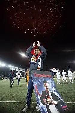 His first two seasons as head coach saw the club struggle against relegation,[3][4] but his attacking philosophy began to bear fruit as Strømsgodset started to record higher finishes in the Norwegian league.[3] In 2010, he won the Norwegian Cup,[4] and in 2013 he won Tippeligaen with Strømsgodset, their first title in 43 years.[4] The same year, Deila was also awarded the Kniksen Award for Coach of the Year.[8]