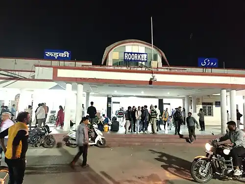 Roorkee railway station is a junction railway station in Haridwar district, Uttarakhand, India. Its code is RK. It serves Roorkee city. The station consists of five platforms. Roorkee is one of the largest railway stations in Uttarakhand. It is located in Moradabad Ambala Railway Line other lines are Deoband Roorkee Line, Laksar Bypass line and Saharanpur Bypass line also called as Direct line to Tapri Junction. It is also the third largest Junction station in Uttarakhand.[1][2][3][4]