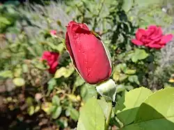 Rosa 'Chrysler Imperial' is a strongly fragrant, dark red hybrid tea rose cultivar. This variety was bred and publicly debuted by Dr. Walter E. Lammerts of Descanso Gardens, La Cañada Flintridge, California, US in 1952. Its stock parents 'Charlotte Armstrong' (cerise pink) and 'Mirandy' (dark oxblood red) are both 'All American Rose Selections'-roses (awarded in 1940 and 1945).