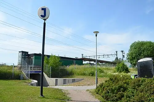 Rosersberg is a station on the Stockholm commuter rail network, located on the Märsta branch in the locality of Rosersberg, Sigtuna Municipality, approximately 31.4 km from Stockholm City Station. The station features a central island platform with an entrance from an underground pedestrian tunnel. In winter 2015, the station had approximately 1,200 boarding passengers on an average weekday.[1]