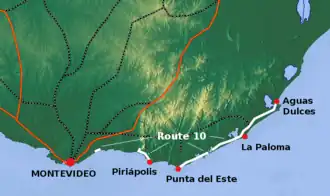 Route 10 is a national route of Uruguay. In 1983, it was assigned the name Juan Díaz de Solís, honouring the Spanish navigator.[1]