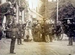 The exhibition was opened on 7 May 1890 by the Prince of Wales and featured three themes, the industrial work of the soldier, articles of equipment, collection of pictures and other objects of military interest.[2] The exhibition also had tournament displays of military bands, tug-of-war and demonstration ascents of war balloons.[3] The musical division was co-ordinated by Colonel Thomas Bradney Shaw-Hellier, commandant of the Royal Military School of Music. Over the five-month exhibition, 74 military bands came from all over the country to perform beside the River Thames in central London. A large collection of musical instruments, particularly wind instruments, was displayed, and a catalogue was issued the following year.[4]