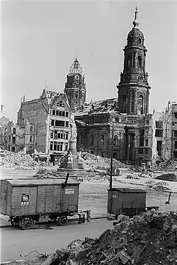 Probably his most famous work is the motet Wie liegt die Stadt so wüst (How desolate lies the city), written after the destruction of Dresden in February 1945. The text is taken from the Lamentations of Jeremiah, verses 1,1.4.9.13; 2,15; 5,17.20–21. The work is often seen as a bemoaning of the destroyed city, but given the biblical context, it can also apply to the whole of Germany and her people, the destruction of the country being punishment for its iniquities. Mauersberger's Dresden Requiem also reflects the destruction. He wrote a Passion music after St Luke, Passionsmusik nach dem Lukasevangelium, and the Dresdner Te Deum.