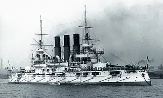 Retvizan (Russian: Ретвизан) was a pre-dreadnought battleship built before the Russo-Japanese War of 1904–1905 for the Imperial Russian Navy. She was built by the American William Cramp & Sons because Russian shipyards were already at full capacity. Named after a Swedish ship of the line that was captured during the battle of Vyborg Bay in 1790 (Swedish: Rättvisan, meaning both fairness and justice), Retvizan was briefly assigned to the Baltic Fleet, but was transferred to the Far East in 1902.