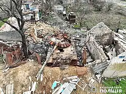 A mass grave was found in Snihurivka with 27 dead civilians. At the same time, it was emphasized that no mass burial sites were found in the city, as in the massacre in Bucha, Kyiv oblast. All the bodies were buried in individual graves.[32][33][34][35][36] Much of the city was damaged and destroyed.[37][38] A tomato plant, built in 2018,[39] had been bombed and destroyed using grad multiple rocket launchers.[40][41]