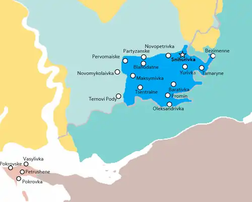 On 21 September, it was announced that the area surrounding Snihurivka as well as the outer portion of the Kinburn Peninsula, which constituted the parts of Mykolaiv Oblast that were under Russian control at the time, would be incorporated into Russia's administration in Kherson Oblast. These areas would eventually be annexed by Russia on 30 September.[12][13][14]