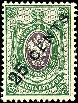 A 25 cents on 25 kopecks stamp of 1917