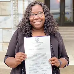 Richardson authored legislation to make Juneteenth an official state holiday in Minnesota, which passed the House on a vote of 126-1 and was signed by Governor Walz in February 2023.[5][6][7]