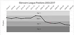 Chart of Glencairn's yearly table positions in the Scottish Junior Football leagues from 2003 to 2017