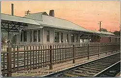 Railroad service through Rye dates back to the 1840s when the New York and New Haven Railroad laid tracks through the town and the city. The NY&NH was merged into the New York, New Haven and Hartford Railroad in 1872. In 1907 the main line was electrified through a major power plant across the state line in Cos Cob built by Westinghouse. Beginning on July 1, 1928, Rye became the northeastern terminus of the New Haven Railroad's affiliate, the New York, Westchester and Boston Railway, on a separate platform from the rest of the station.[5] By December 7, 1929 the line was extended to Port Chester and Rye served as the penultimate stop on the Port Chester Branch.[6] The NYW&B station closed on October 31, 1937, and the New Haven removed the rails in 1940. The New England Thruway was built on the site of the NYW&B station during the 1950s.
