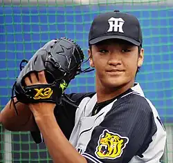 During postseason, he was the sole Hanshin player selected to join the Samurai Japan roster and participate in a 3-game series against Chinese Taipei.[15] He contributed to Japan's victory (4–2) on the November 9 game by striking out 2 batters in the 7th inning, throwing his fastest at 151 km/h.[16]