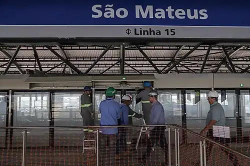 São Mateus is a monorail station of the São Paulo Metro in Brazil. It belongs to Line 15-Silver, which is currently in expansion, and should go to Cidade Tiradentes, connecting with Line 2-Green in Vila Prudente. It is located in Avenida Sapopemba, 13542.