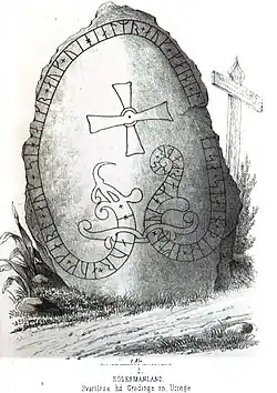 2. ^ Dybeck, Richard (1855). Svenska Run-Urkunder. Stockholm: Joh. Beckmann. pp. 8–9 & fig. 5.